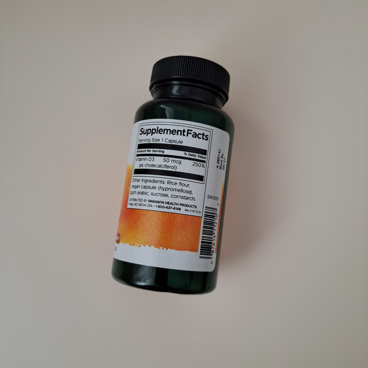 ویتامین دی Swanson Vitamin D3 50 mcg 2000 IU) افزایش جذب کلسیم و فسفر در بدن و ساخت استخوان های قوی را وعده می دهد. ویتامین D3 برای جذب کلسیم ضروری است و از استخوان ها، دندان ها و سیستم ایمنی بدن حمایت می کند.