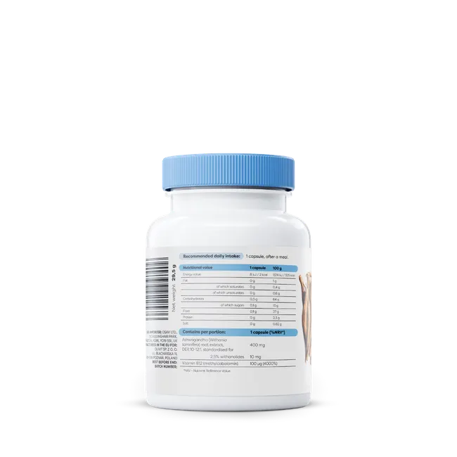 آشواگاندا Ashwagandha Extra 400 mg از برند OSAVI، در قالب کپسولهای گیاهی، ترکیبی از عصاره استاندارد شده ریشه آشواگاندا (Withania somnifera) و ویتامین B12 (متیلکوبالامین) است. این محصول با هدف حمایت از سلامت روانی و جسمی طراحی شده است.